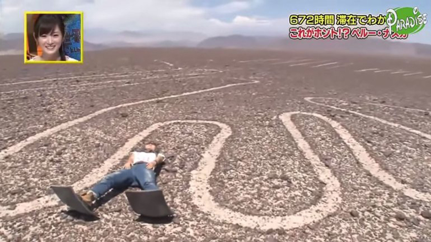 国际在线专稿:据阿根廷Infobae网站1月7日报道,在秘鲁纳斯卡沙漠上存在了2000年之久的巨型线条图是世界上尚未解开的几大谜团之一。去年12月8日,“绿色和平组织”因非法进入该保护区,并在巨型蜂鸟图旁铺设黄色标语,而引发秘鲁国内的强烈不满,同时,该人类文化遗产的保护存在疏忽的问题也被持续关注。本月6日,秘鲁媒体再次曝出一则新闻,称日本某电视台在2013年曾派摄制组非法进入该保护区进行拍摄,一名日本女记者甚至躺在了巨型线条上,引发秘鲁舆论的谴责。