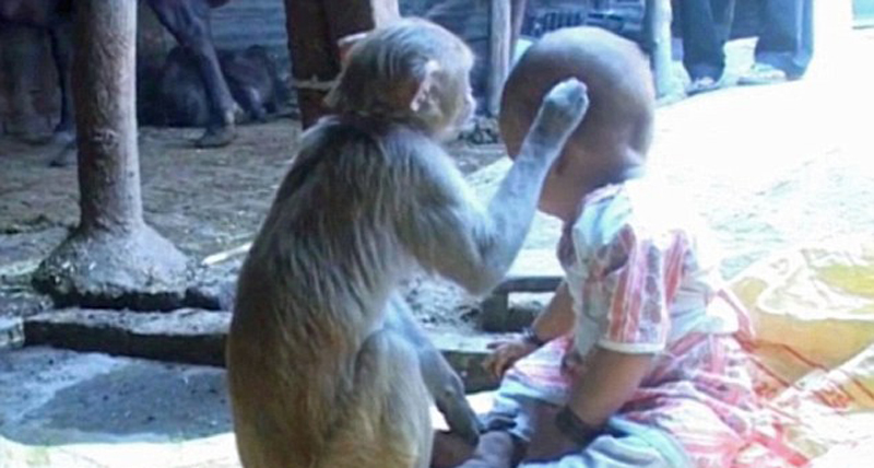 据女孩家人拍摄的一段视频显示,这只猴子完全将小女孩当成了自己的宝宝,对其精心照顾,喂小女孩吃东西,甚至还帮她捉虱子。
