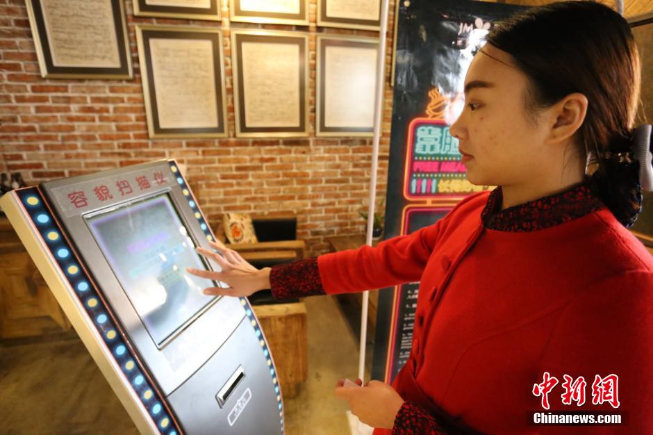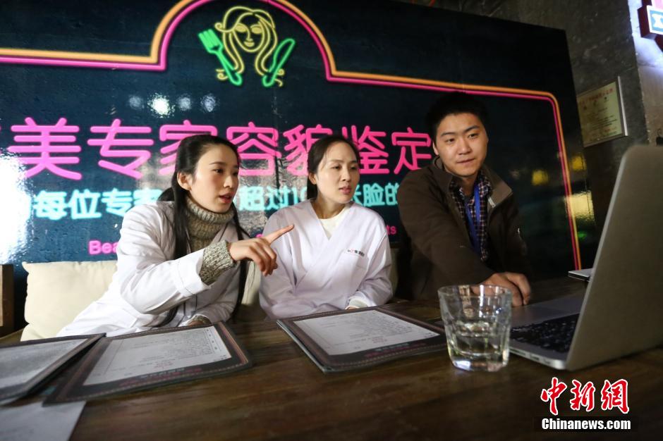 图为1月12日,餐厅内,美容专家在给顾客容颜值评分。 杨正华 摄