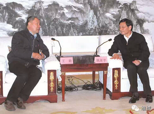 欧洲时报记者与中共江西省委常委、宣传部长姚亚平(右)亲切交谈