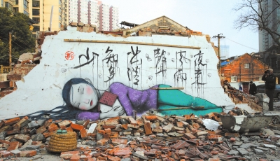 然而,24日下午,10多幅涂鸦画大都已是面目全非,有的甚至已被砸毁推倒,其余的也被铲去画面的主要部分。几乎每一处有涂鸦画的废墟旁都挂起了“施工工地、禁止入内”的警示牌。这些精美的涂鸦画在一夜之间被毁,引起专程前来的摄影爱好者和游客的不满,也为如此欠妥的极端举措扼腕叹息。