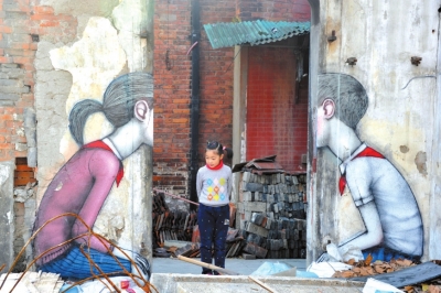 最近,位于上海市康定路600弄的一处拆迁工地,变得热闹起来。这里出现了10多幅涂鸦作品,风格统一,充满童真的人物形象和怀旧情怀,吸引了众多市民驻足观看,也吸引着不少摄影爱好者前来拍摄。