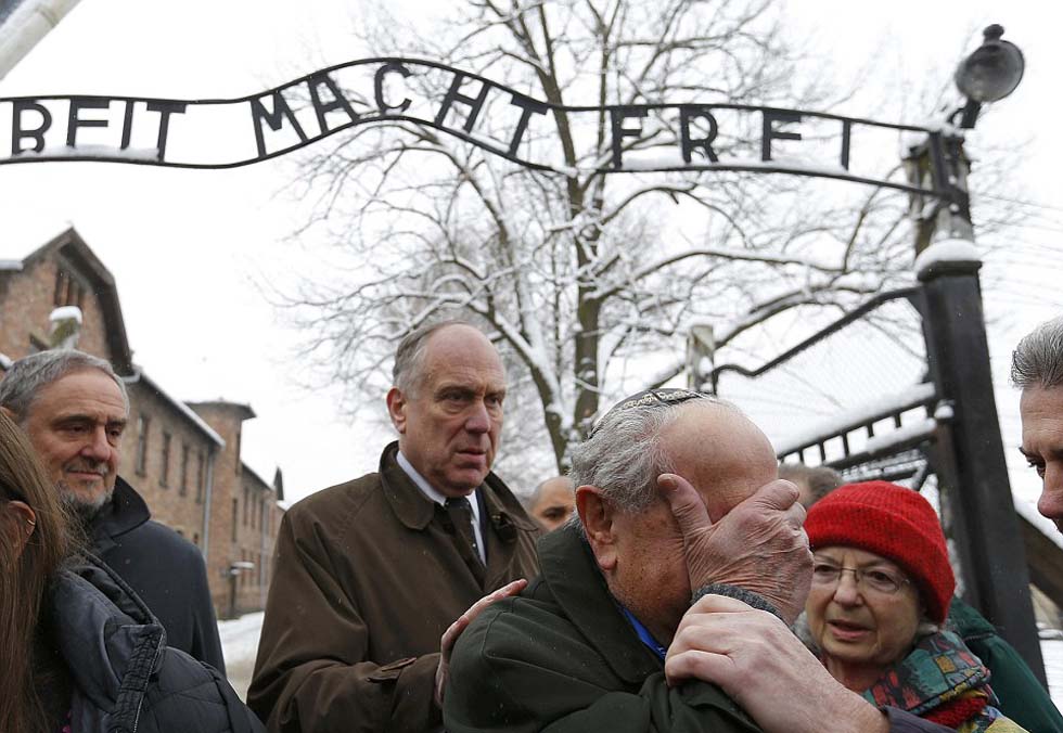 奥斯维辛集中营解放70周年纪念日,幸存者们手持着解放当日所拍摄的照片。