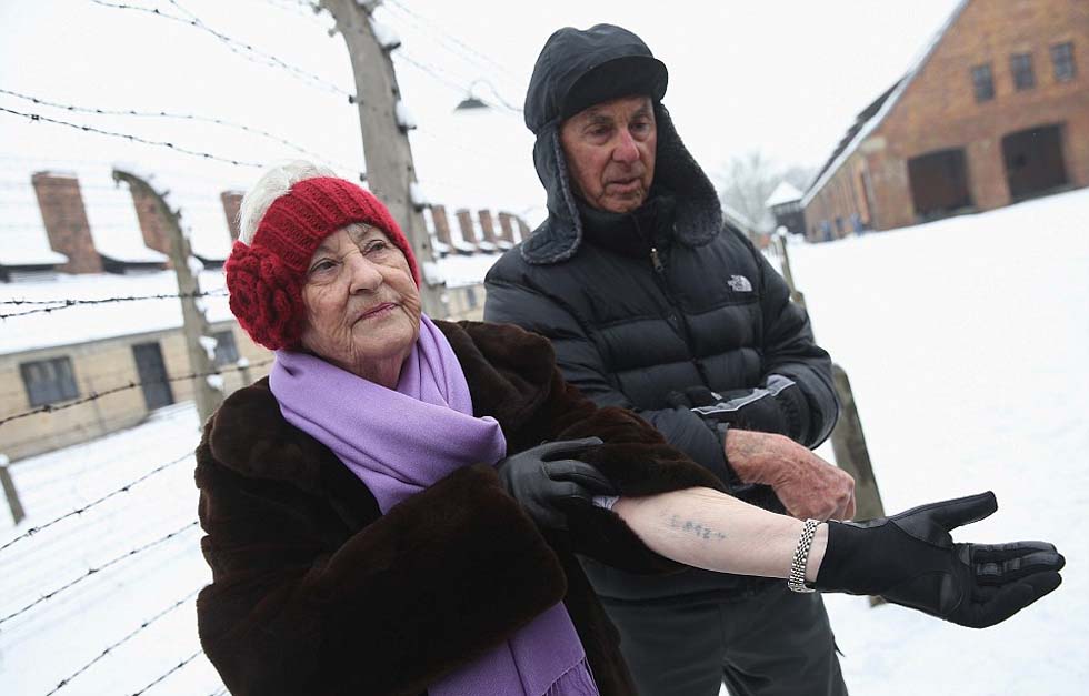 85岁的集中营幸存者罗丝·辛德勒(Rose Schindler,右)与85岁的丈夫马克思(Max)回到从前的死亡集中营。她的父母与4位兄弟姐妹均在集中营遇害。
