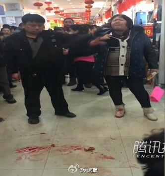 “项链两千多”又现升级版!昨天下午2点多,在沈阳一家超市里,一位老年人和一位女子发生口角,中年妇女随即将老人按倒在地,骑在身下暴打,老人被打得满脸鲜血,女子还不停地说:“我眼镜三万多,你这条命都赔不起…”