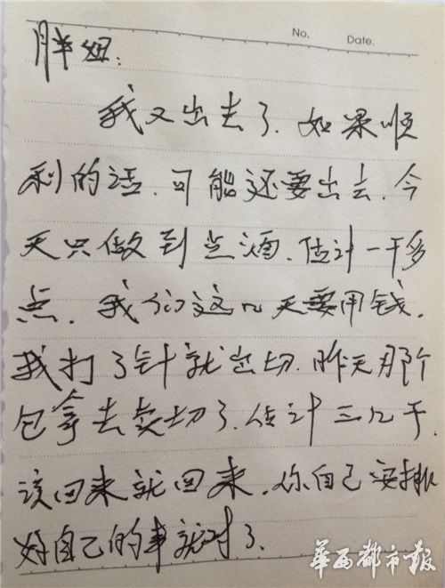 “胖妞,我出去了,你醒了就吃你的东西……我挣了钱直接回来,但愿弄一个好的,能用上一两个月就好了。”41岁的周旭(化名)每次外出偷盗前,都会给家中的女友留下一张爱的字条,叮嘱对方照顾好自己。