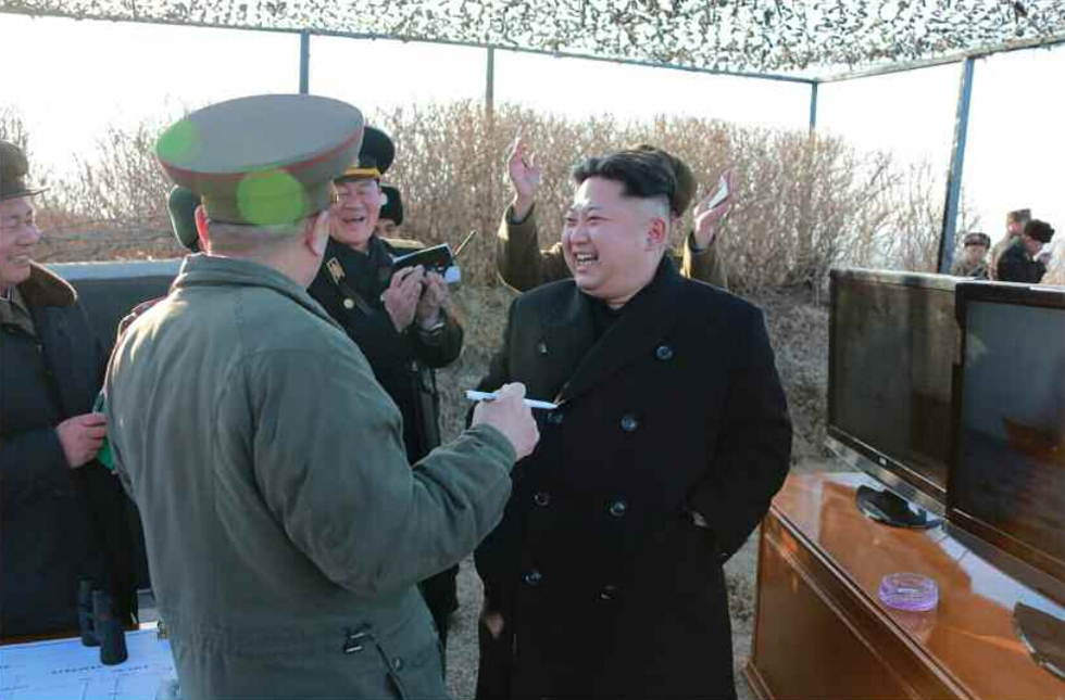 2015年2月7日消息,据朝中社7日报道,朝鲜最高领导人金正恩日前观看朝鲜人民军进行新型反舰火箭发射试验。