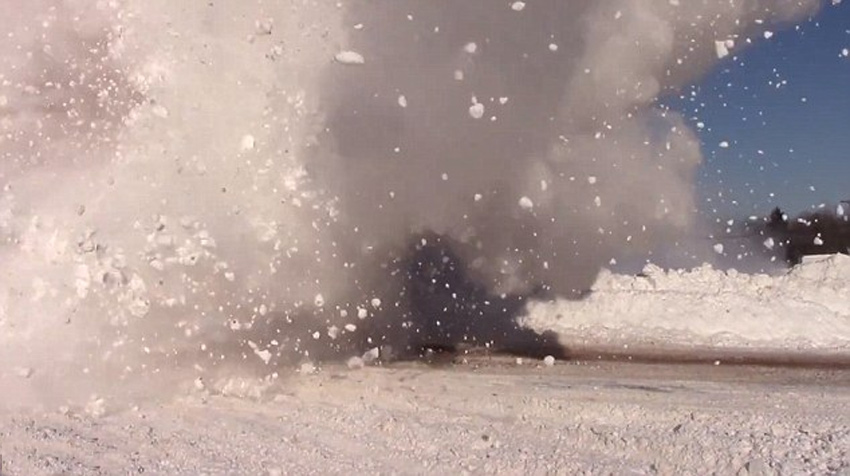 加拿大因为暴风雪,宣布进入紧急状态,这场暴雪让加拿大多处都受到袭击,推积超高的雪,似乎连铲雪车都来不及清除。有民众就拍下位于新伯伦瑞克省某处的轨道上,有大量堆积的雪,在红色货运列车高速经过时,不断撞击出白茫茫“雪雾”。