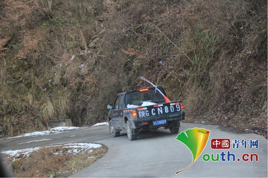 为节约行程,爱心车队翻越蜿蜒崎岖的“二娅子”山路回家,笔者在途中还看到车队下山时经过冰雪未消的弯道的情形。返回途中,车队在一户破烂瓦房门前停了下来,一个满脸污垢的小孩正在门前玩耍,见到陌生人,孩子赶紧往屋里躲,没想到在门上被自己的爷爷拦住了,志愿者向爷爷询问了孩子的家庭的情况并把大家最后的几包干粮送了上去。