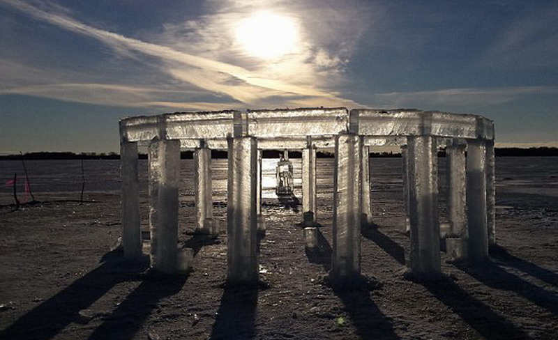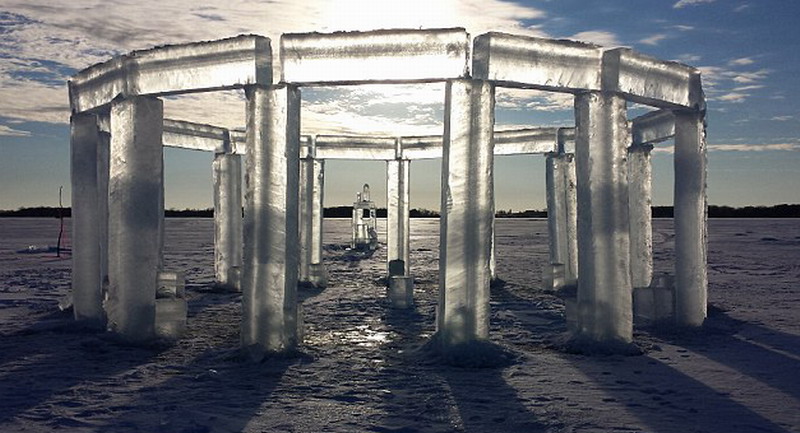 这5人分别是德鲁·麦克亨利(Drew McHenry)、凯文·勒纳尔(Kevin Lehner)、奎因·威廉姆斯(Quinn Williams)、亚历克·萨马拉斯(Alec Seamars)以及帕特里克·希尔兹(Patrick Shields)。这已经是他们第二次尝试用冰柱制作英国巨石阵复制品了。