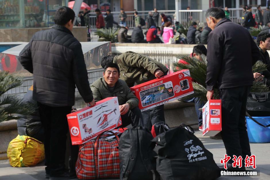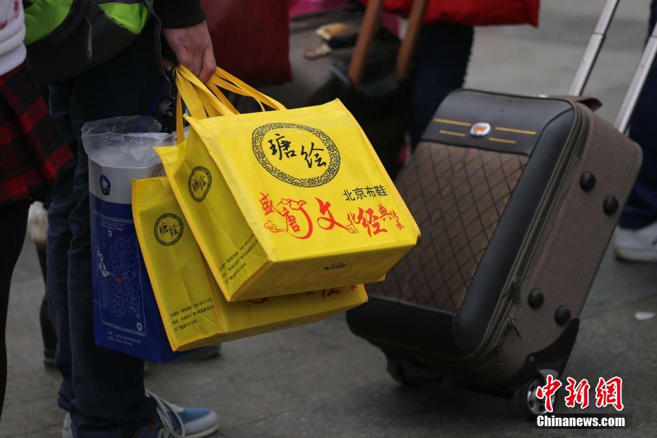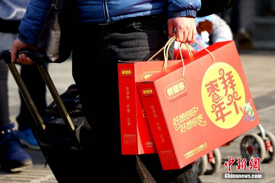 春节是中国人最重要的一个节日,阖家团聚是在外的游子们最幸福的事儿,无伦家有多远,路有多长,都要回家过年。人们回家的时候会给家人带回去些礼物,表达祝福,回家的路上,每个人的行囊里都装着不同的礼物,丰富着春运旅途。杨正华 摄