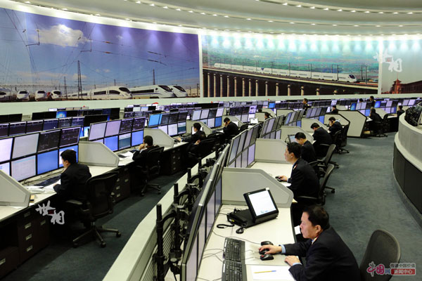 2015年2月12日,北京铁路局调度指挥大厅,铁路调度员正在工作。中国网 陈维松 摄