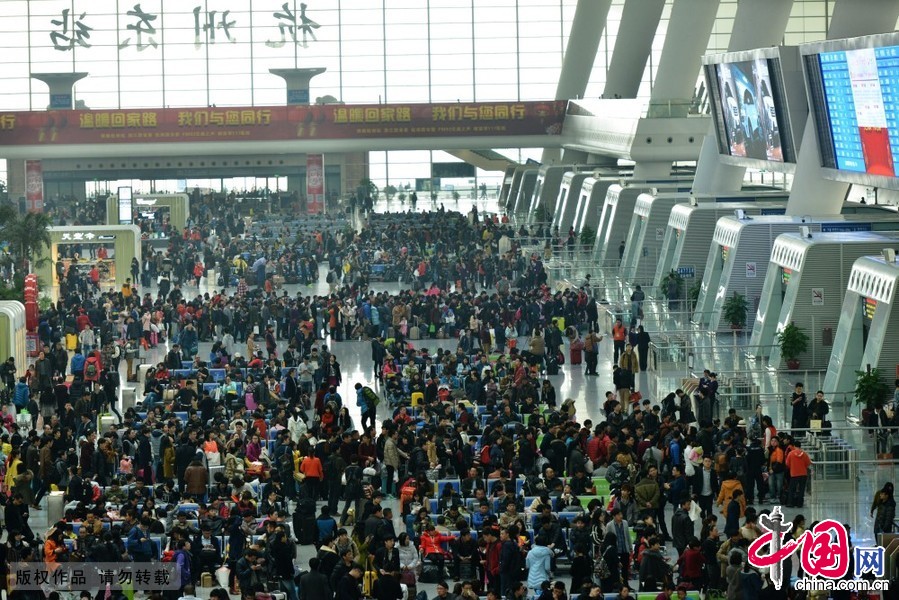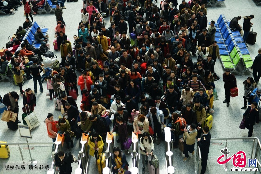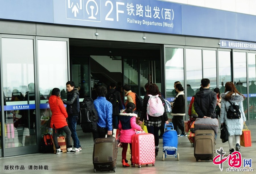 2015年02月16日,浙江省杭州市,旅客进入铁路杭州东站的候车大厅。中国网图片库 龙巍摄