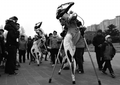 第十二届北京朝阳国际风情节开幕,来自荷兰“星际穿越者”在游客中穿行。京华时报记者王俭摄