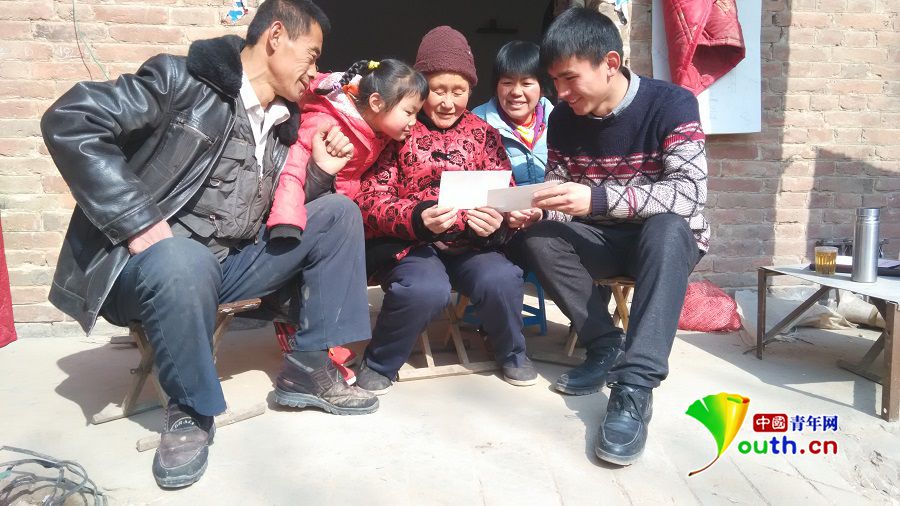中国青年网商丘2月20日电(记者 裴清波)春节是中国人阖家团圆的的幸福日子,贴春联、采购年货,隆隆的鞭炮声映衬着门前的大红灯笼……春节期间的农村弥漫着满满的年味。农村的春节,自然少不了大学生村官的身影,看望村民、参加春节文艺汇演、与村民拍摄全家福、宣传过年民俗……他们的春节生活精彩纷呈。
