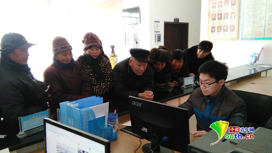 图为春节前,亳州市古井镇大学生村官田明杰在为村民办理事项。