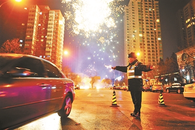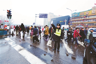 从年三十到初二,东城支队和平里大队警长贾满仓和同事们,已经在地坛南门路口连续执勤两天两夜了。