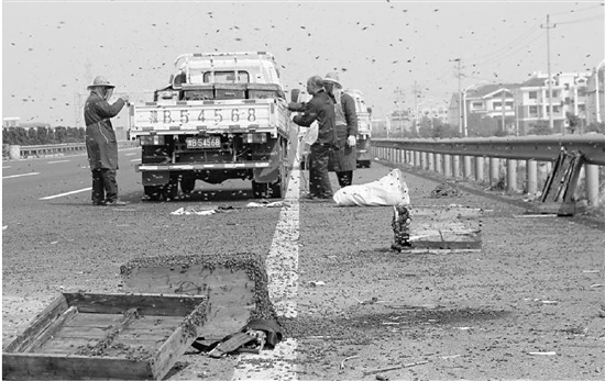 不过,三、四车道上散落着一箱箱货物,目所能及的两三百米,被一群乌压压的东西笼罩,走近一看,全是蜜蜂。