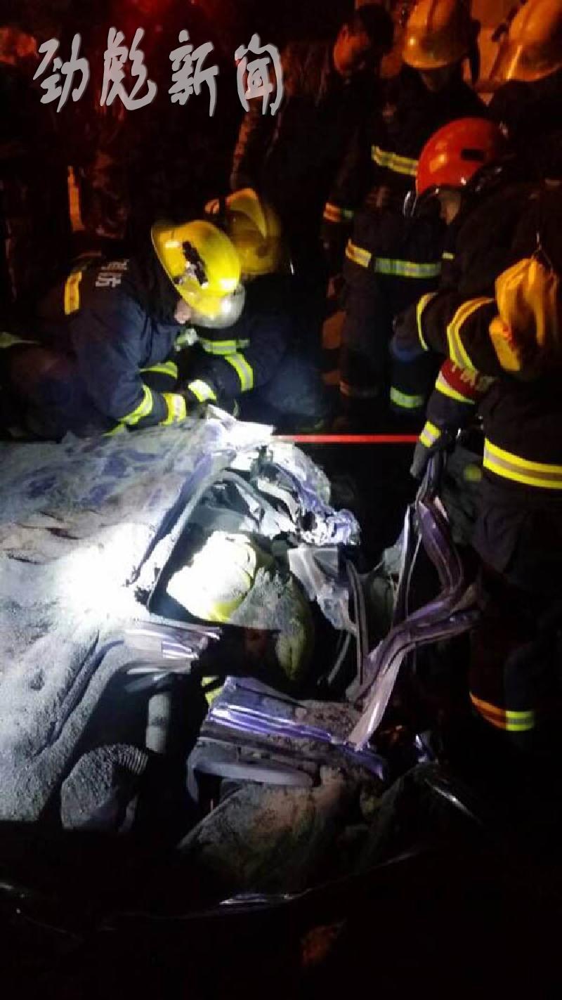 截至21日零时20分,经过消防官兵破拆后,确认轿车内5人死亡。