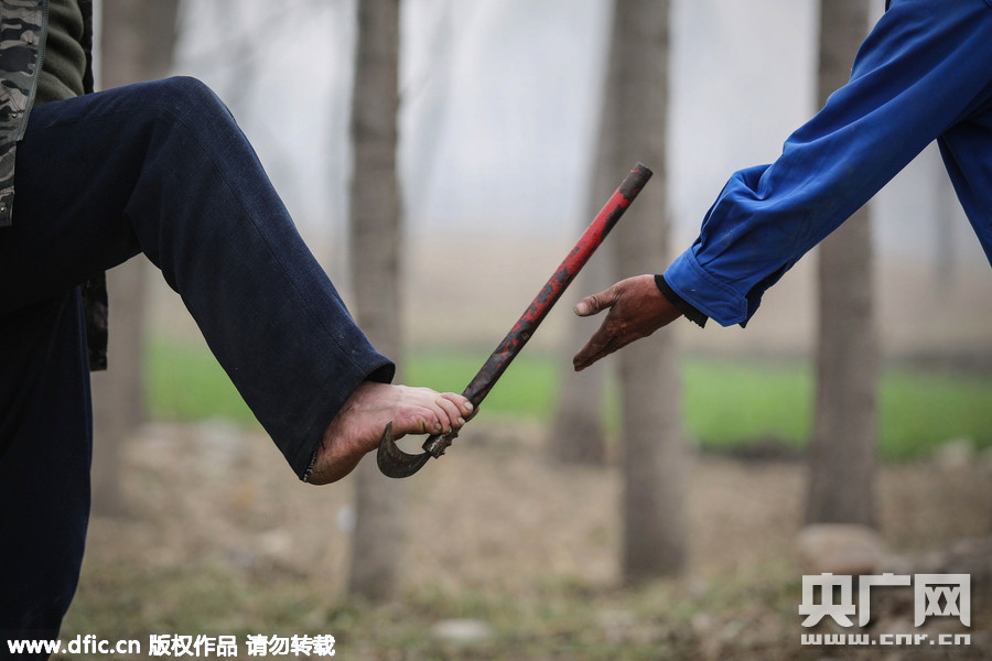 种树的时候,哥俩配合十分默契。贾海霞一伸手,贾文其就知道是要镰刀。他用脚精准地夹起地上的镰刀送到贾海霞手里。
