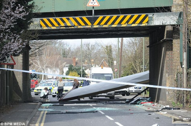 中国网3月28日讯 据外媒报道,当地时间3月27日上午10时20分左右,英国萨里Staines,一辆载有70多名学生的大巴车在开往索普公园(Thorpe Park)途中撞上一座高度较低的铁路桥,大巴车顶棚被大桥完全“切掉”,车内的学生们吓得惊声尖叫。