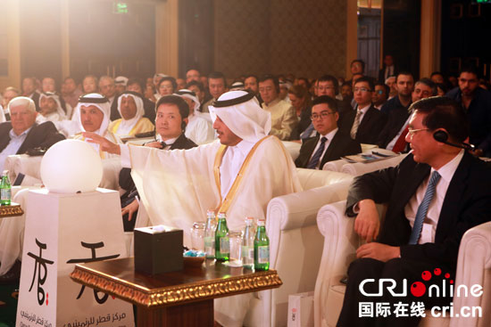 卡塔尔首相触摸圆球正式启动中东地区首家人民币清算行(摄影 钟正杰)
