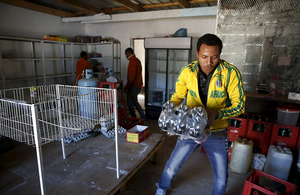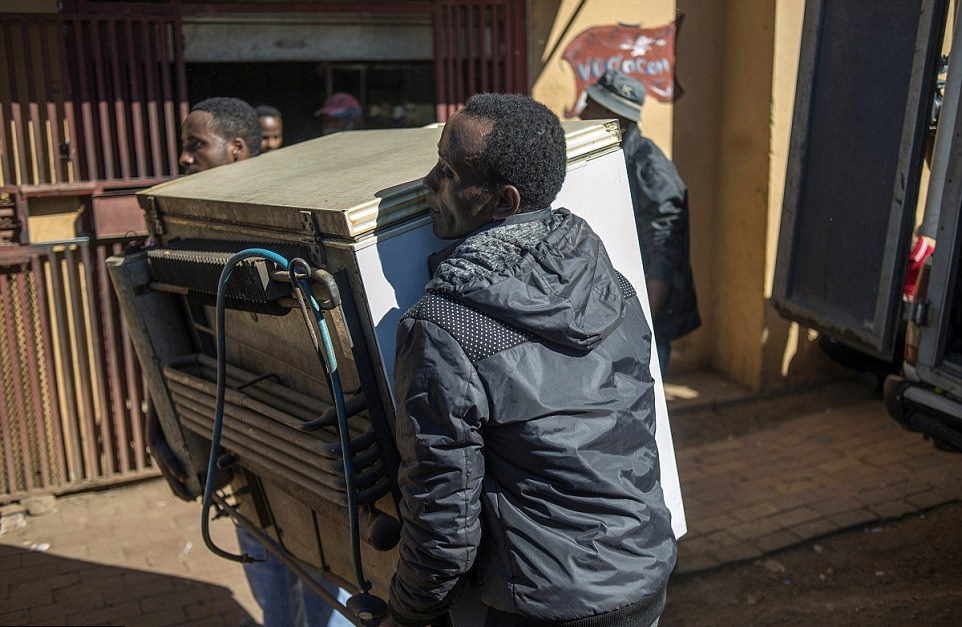 当地时间2015年4月16日,南非约翰内斯堡,由于排外骚乱,外籍人店主撤出商店中的物品。