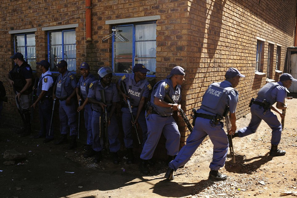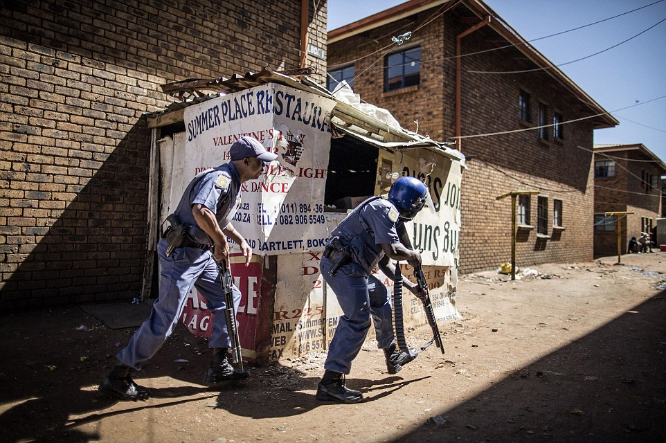 当地时间2015年4月16日,南非约翰内斯堡,警察在排外骚乱后试图进入旅馆。