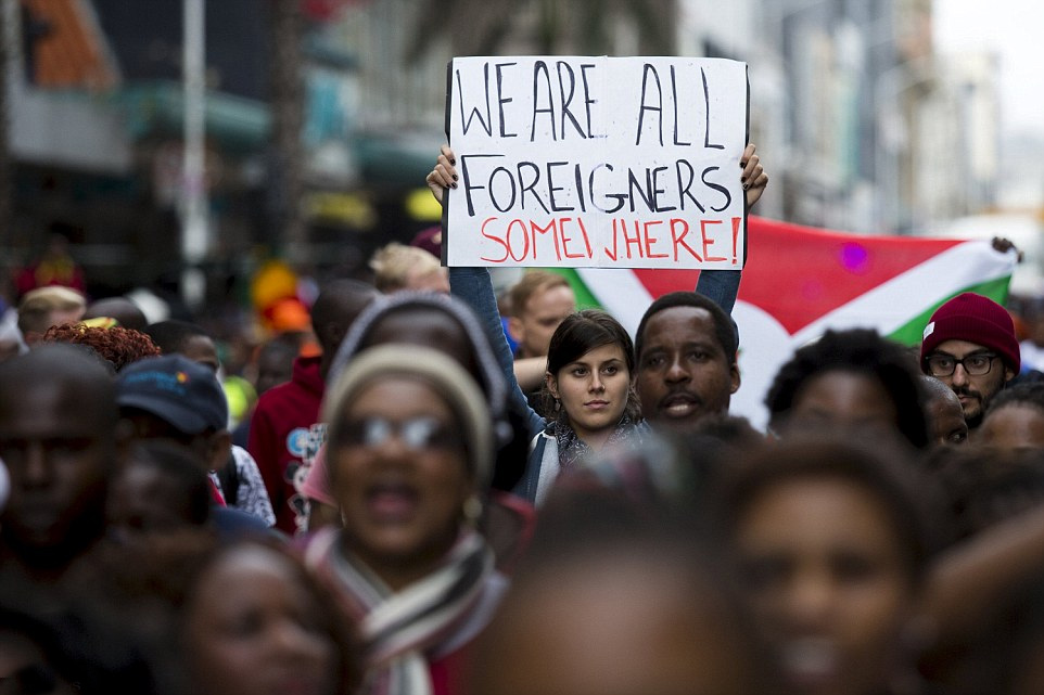 当地时间2015年4月16日,南非德班,约万人参加集会和游行,抗议过去两个星期在当地发生的攻击外国人事件。