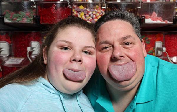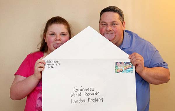 国际在线专稿:据英国《每日邮报》4月16日报道,美国纽约州雪城(Syracuse)47岁男子拜伦·施兰克(Byron Schlenker)与14岁女儿艾米丽(Emily)都是吉尼斯世界纪录保持者,他们拥有世界上最宽的舌头,甚至超过iPhone 6手机宽度。