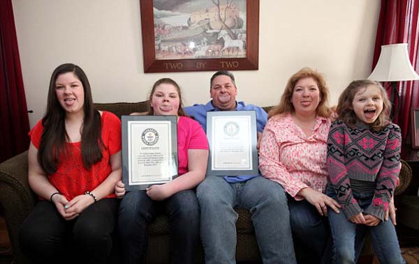 施兰克全家在雪城庆祝父女二人打破吉尼斯世界纪录。(网页截图)