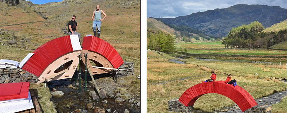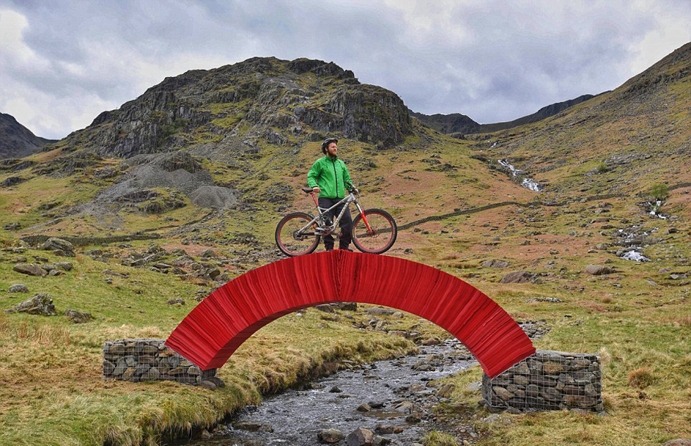 这座纸桥位于坎布里亚郡赫尔韦林山的Grisedale峡谷上。(网页截图)