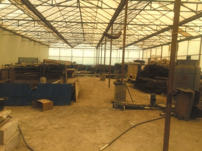 在工厂的二层办公楼和厂房之上都加盖了塑料大棚。厂房上方的塑料大棚内以水泥铺地,存放着大量建筑材料和工具,并未发现农业用具。部分大棚内已经加盖了简易的厂房,有工人在其中工作。塑料大棚北侧紧邻一片耕地,有老人在耕种,老人说,该厂房是大概两年前建成的,在建厂之前,该地块一样是耕地。