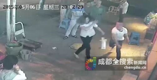 20时03分24秒时,女子被人带出了监控画面,之前的打人男子又朝女子冲了过去,手中还多了一把疑是刀具的物品,但冲出几步便被拉回。3分46秒时,双方均消失在监控画面中。