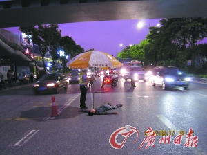 到达现场时,大雨已至,伤者躺在冰冷的马路上,不断地呻吟、抽搐,雨点不断打落在身上。吴警官和蔡警官心中一紧,马上分头行事,一边用警用摩托车拦住伤者所在车道车辆,保护伤者,一边迅速到附近借来一把太阳伞,为伤者撑伞伫立,遮风挡雨。现场的一位市民,更主动搬来石墩给撑伞的吴警官借力,直到救护车到场,将伤者送到医院进行救治。目前,伤者经医院救治,已脱离生命危险。(记者李栋 通讯员交宣摄影报道)