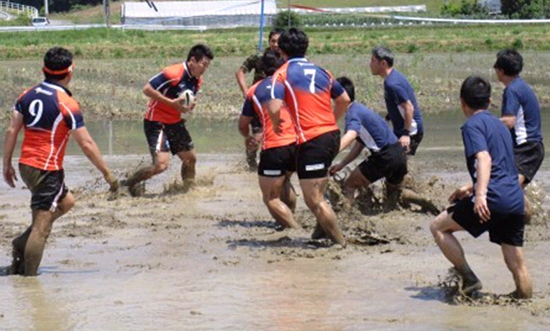 国际在线专稿:据日本《每日新闻》5月18日报道,京都福知山市17日举办了“首届稻田橄榄球大赛”。大赛在还未插秧的稻田展开,日本职业橄榄球联赛的球队也前来参加,炒热了现场气氛。