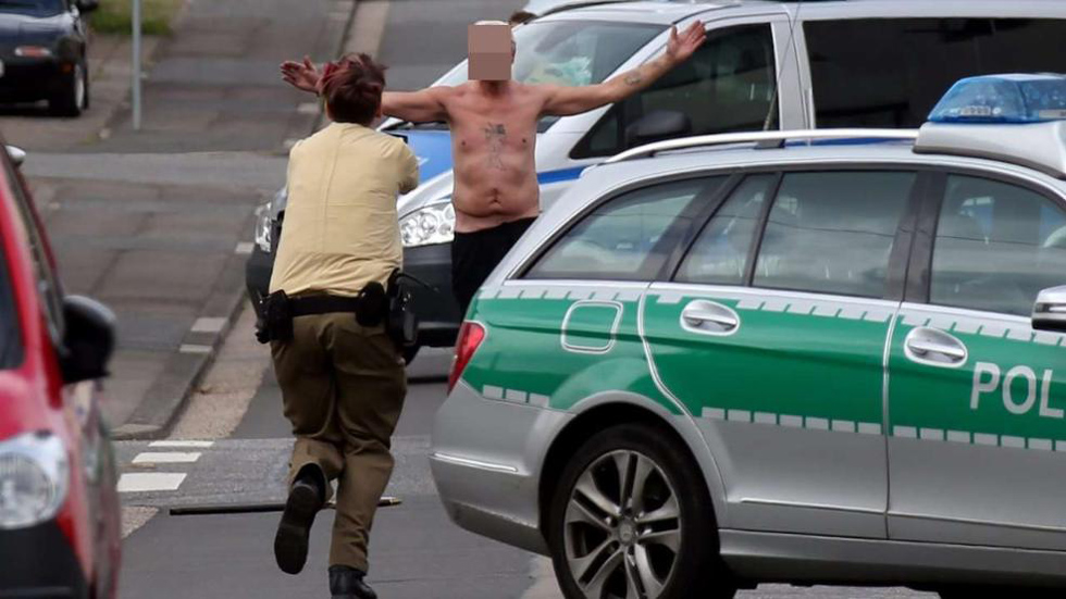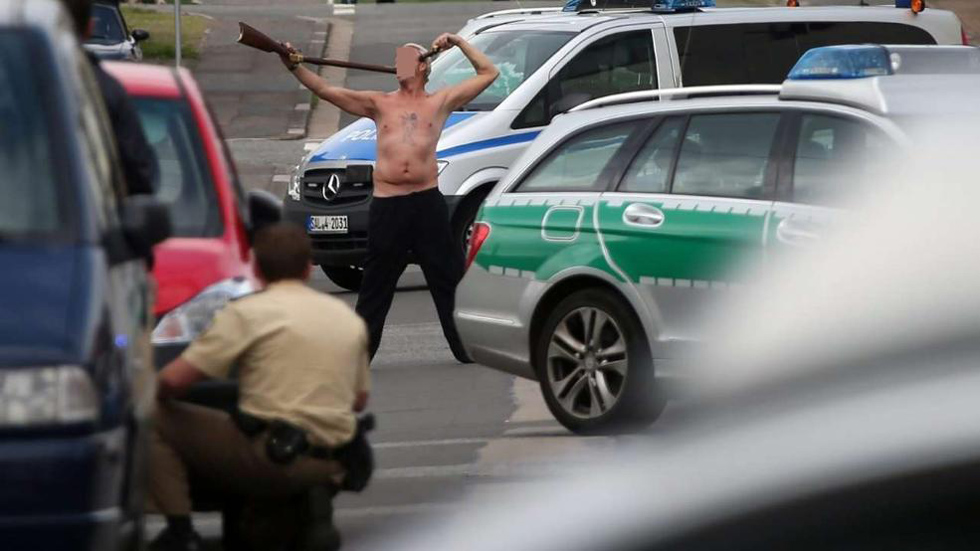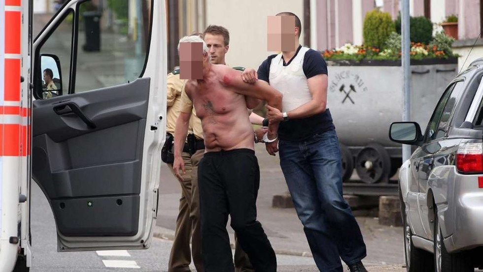 国际在线专稿:据德国《图片报》5月19日报道,日前,德国萨尔州(Saarland)小城希夫韦勒(Schiffweiler)的一名醉酒男子持枪走上街头,对准自己欲自杀。幸运的是,经过一番紧张的对峙,他最终被警方制服。