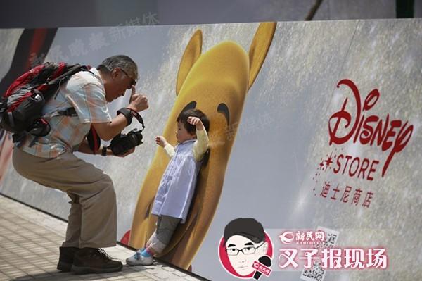 (市民和迪士尼商店的展板合影 新民晚报新民网 萧君玮 摄)