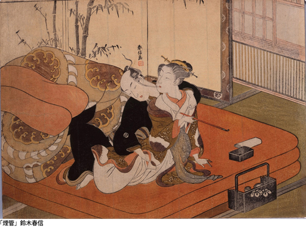 永青文库将在春宫画展上展出的《烟管》,作者铃木春信