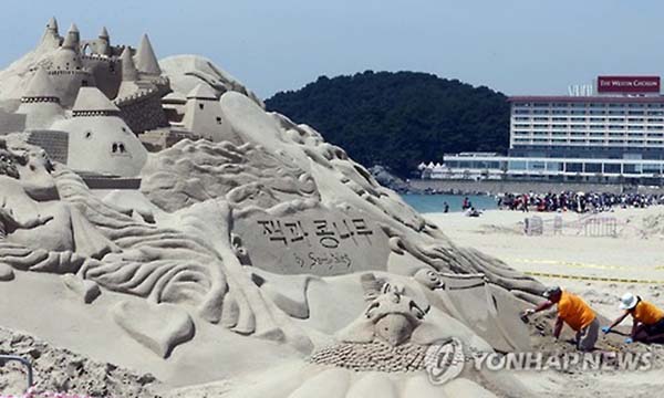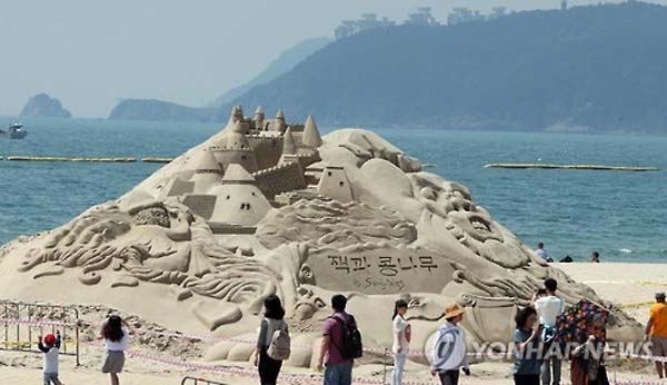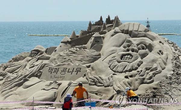 据悉,此次釜山沙滩狂欢节有来自韩国、加拿大、意大利、荷兰、美国等国总计10名世界著名沙雕家参与其中。沙雕家以沙滩作为画布,将《木偶奇遇记》、《小飞侠》、《绿野仙踪》、《杰克与豌豆》、《爱丽丝梦游仙境》等经典童话制成大型沙雕作品。