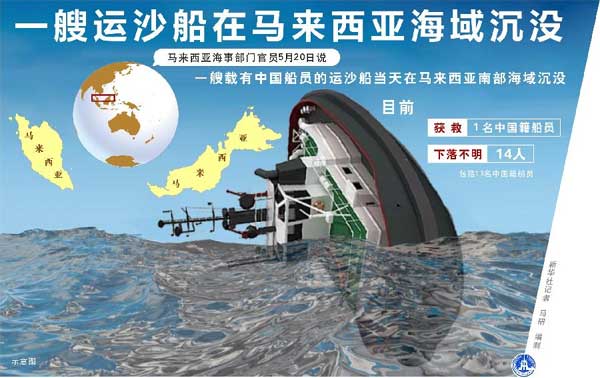 新华社图表,北京,2015年5月20日 图表:一艘运沙船在马来西亚海域沉没 新华社记者 马研 编制