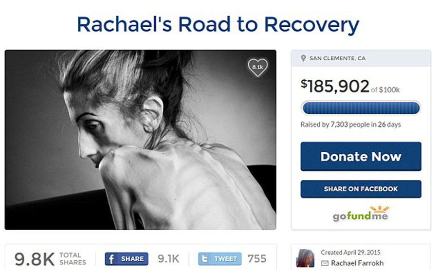 在专门建立的网页上,法洛克的丈夫罗德·埃德蒙森(Rod Edmondson)解释称,当地医院拒绝为妻子提供治疗,因为其严重偏低的体重可能危及生命。法洛克在视频中承诺,这些钱还将用于帮助其他厌食症患者。