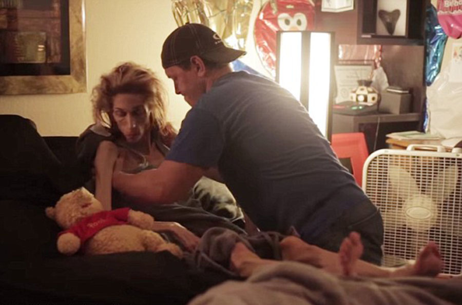 三周前,法洛克上传了自己的求助视频,讲述自己与厌食症战斗10年的艰辛,以及最近身体每况愈下的焦虑。当时法洛克已瘦骨嶙峋,呼吸困难,身体极度虚弱。埃德蒙森被迫辞去在健身馆当私人教练的工作,全天24小时照顾他的妻子。(沈姝华)