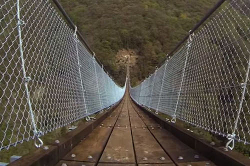 报道称,这座吊桥连接着瑞士南部的两个乡镇,是瑞士境内最长的吊桥。据悉,该造桥工程共动用了28名工人,花了八个月才完成。