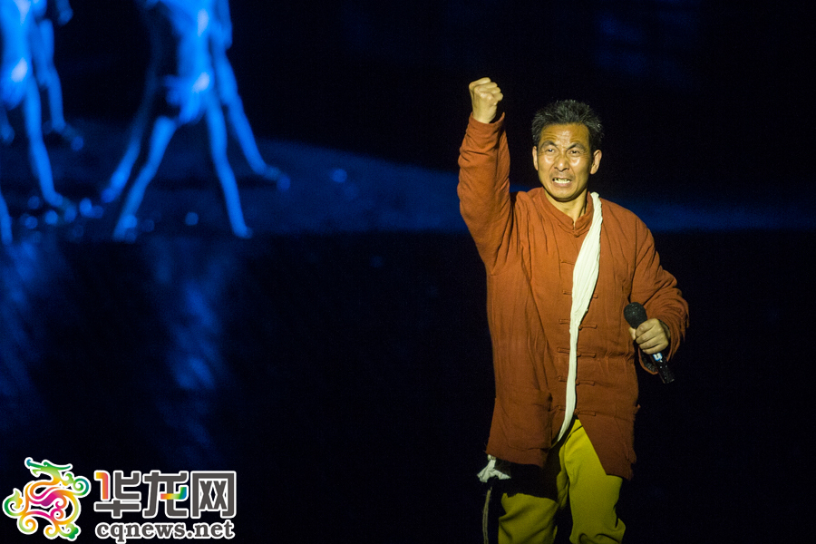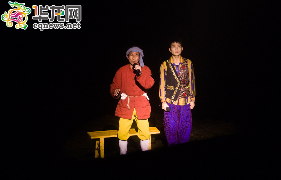 “印象武隆”主线是以一个曾经的老纤夫跟他的儿子将那些过去的故事娓娓道来为主线,串起正个舞台剧。记者 蒋霞曦 摄