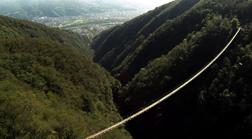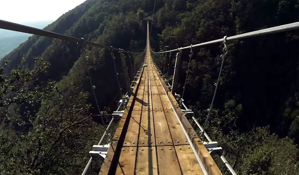 报道称,这座吊桥连接着瑞士南部的两个乡镇,是瑞士境内最长的吊桥。据悉,该造桥工程共动用了28名工人,花了八个月才完成。