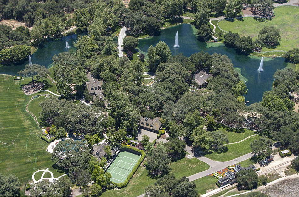 杰克逊于1987年斥资1950万美元买下这座庄园,然后利用其抵押贷款2450万美元,最终因违约失去所有权(网页截图)