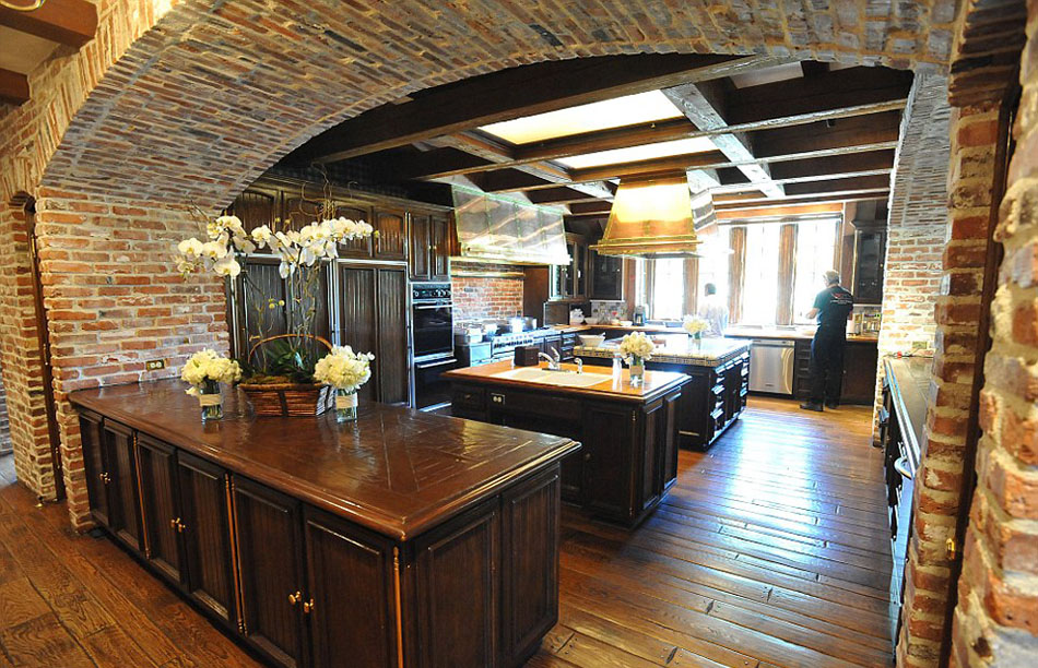 主屋的厨房,有很多柜台,用砖墙建造(网页截图)