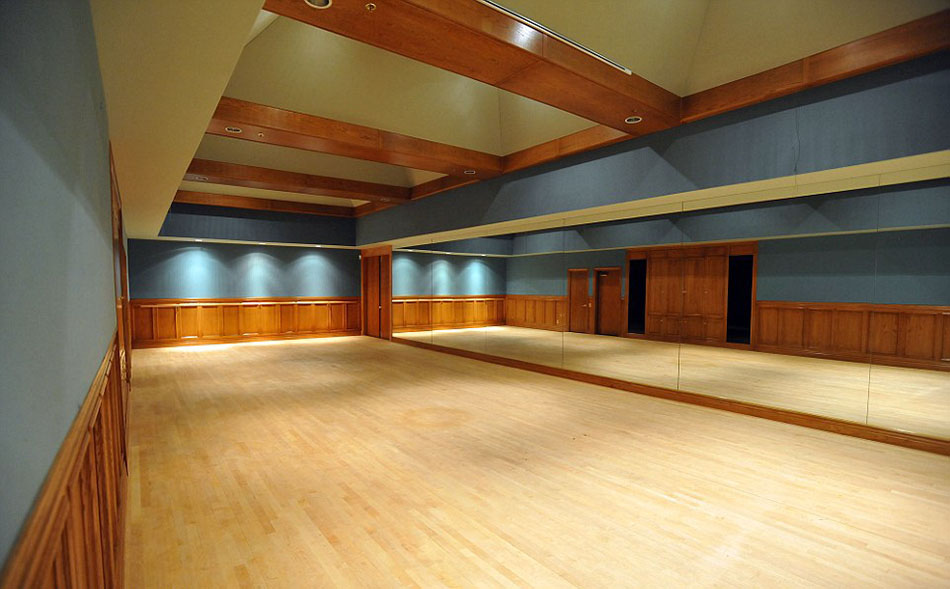 非常宽敞的舞蹈室,包括镶嵌镜子的墙壁和华丽的木质地板(网页截图)