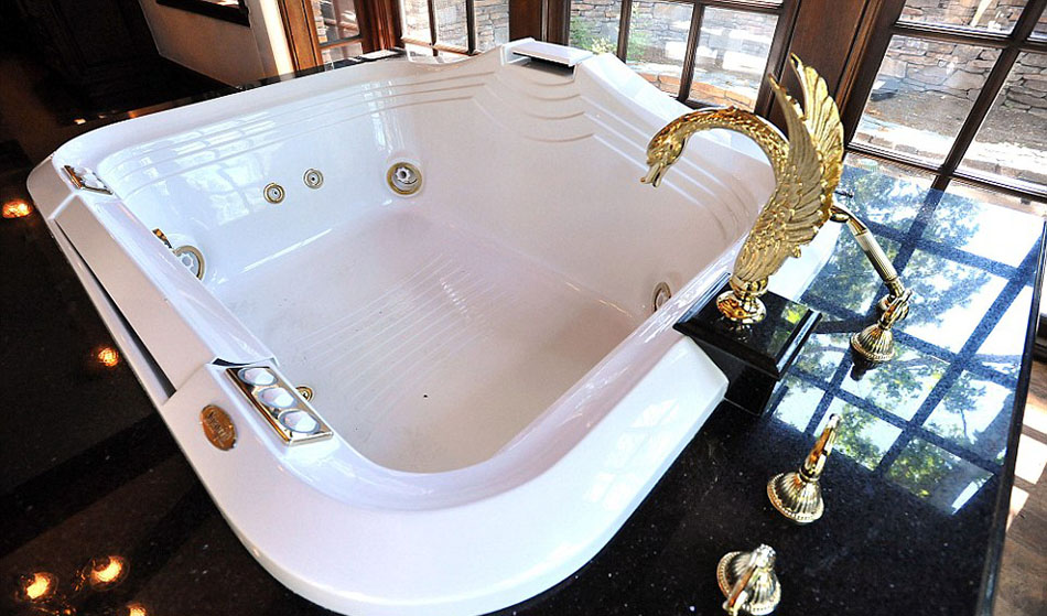 主卧中的巨大浴缸配有华丽的天鹅形水龙头,同时还可欣赏户外风景(网页截图)